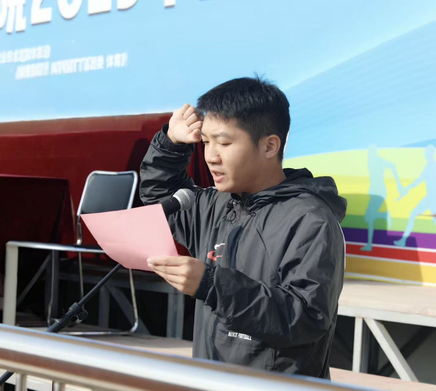 学校党委副书记、校长郭沙发表致辞。他代表学校向运动会的顺利召开表示祝贺,向筹备人员、裁判员致以感谢,向运动员们送上祝福。郭校长回顾了学校2024年体育事业的丰硕成果,从省赛到全国赛事的多项奖牌荣誉,再到丰富的校园体育活动,彰显了学校 “以体育人、铸魂塑体” 的育人成效。