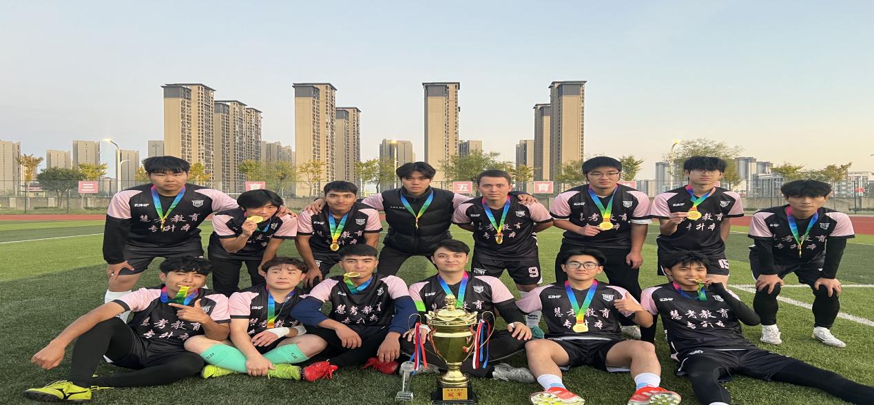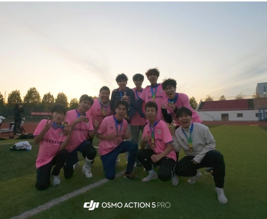 财经与旅游学院凭借过硬的竞技实力和默契的团队协作一路过关斩将。从分区赛到总决赛,队员们攻防兼备、战术清晰,精准的传球、犀利的突破、严密的防守以及果断的扑救,每一个瞬间都彰显着扎实的足球功底与昂扬的斗志。最终,球队力克强敌,成功摘得本次比赛冠军,为学院赢得了沉甸甸的荣誉。