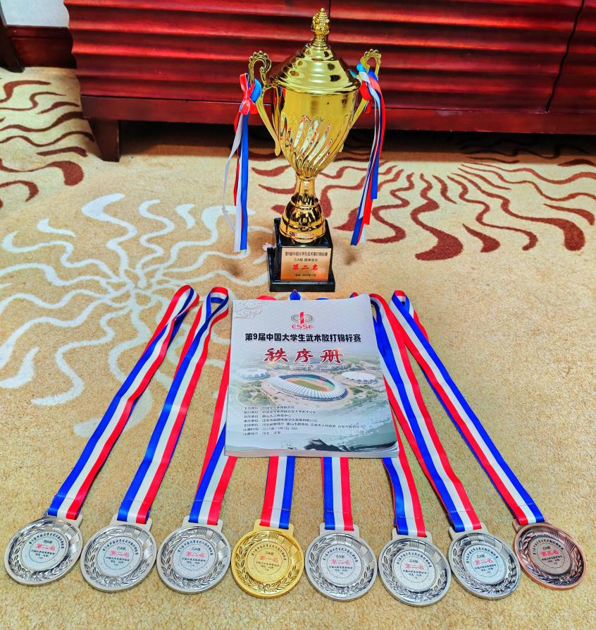 第9届全国大学生武术散打锦标赛于2025年11月1日至8日在河北迁安市成功举办。我校散打队在校领导的亲切关怀与各职能部门的大力支持下,凭借顽强的拼搏精神和出色的竞技水平,在比赛中表现卓越,夺得1金6银1铜,并荣获团体总分第二名的优异成绩,创造我校散打队建队以来最好成绩,充分展现了我校学子昂扬的精神风貌和扎实的专业技能,为学校赢得了崇高荣誉。